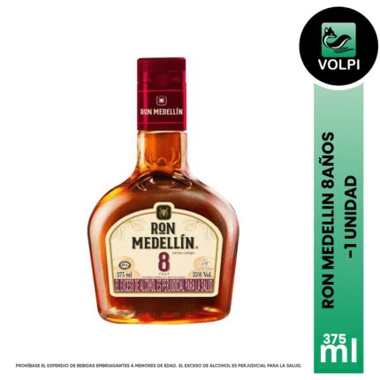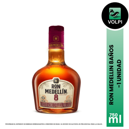 Ron Medellín 8 años es un producto obtenido por la destilación de mostos fermentados derivados de la caña de azúcar, el cual se añeja en barricas de roble, con el fin de obtener el aroma y el sabor que lo caracterizan. Su añejamiento es natural y garantizado por un mínimo de tres años. Es uno de los pocos rones del mundo que se añejan naturalmente. Se recomienda tomar sin mezclas.