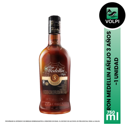Ron Medellín Añejo 3 años, es un producto obtenido por la destilación de mostos fermentados derivados de la caña de azúcar, en barricas de roble, con el fin de obtener el aroma y el sabor que lo caracterizan. Su añejamiento es natural y garantizado por un mínimo de tres años.